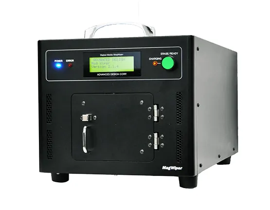 強力な磁気を当て、データを復元不可能状態にします。磁気で記録している記録メディア、HDDやLTOなどのテープメディアに有効です。磁気破壊したメディアは再利用できません。