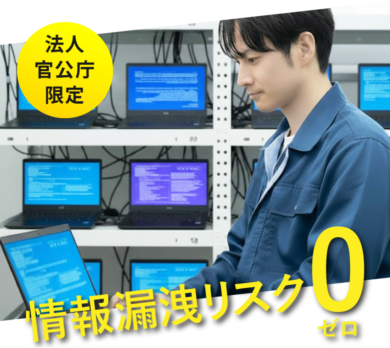 データ消去完了後に機器の持ち出しを行うため、情報漏洩リスクをゼロにすることが可能です。